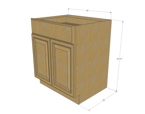Classic Oak Medium Base Cabinet with Double Doors & Single Drawer - 30 Inch Width